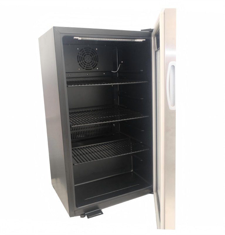 Designed with dorm rooms, offices, hotel suites, and bedrooms in mind, the SC98 stainless steel dorm fridge delivers efficient compressor cooling within a 0°C to 10°C range. It operates quietly and consumes only 1.2kWh per day, making it ideal for continuous use without driving up energy costs.